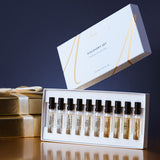 The Aqualis Discovery Set contains 10 of our best selling fragrances. The set is arranged according to the structure of each fragrance. Starting from the most invigorating fresh compositions on the left, taking you through a journey of florals and finishing with the most luxurious base heavy formulations on the right. Happy exploring!